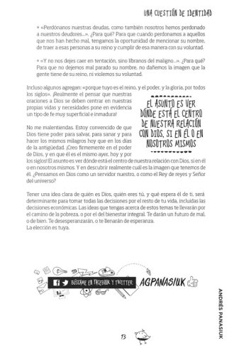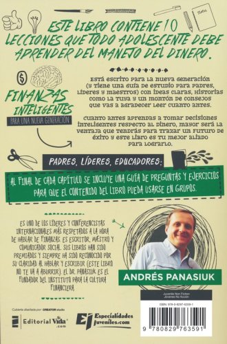 Este libro aborda 10 lecciones obligatorias que debemos enseñar a la nueva generación respecto al manejo del dinero. Cada lección, contiene una reflexión práctica y está desarrollada para la discusión grupal sirviendo como un excelente material para escuela dominical, grupos pequeños, clases bíblicas o cursos de ministerio juvenil. Cuanto antes se aprende a manejar el dinero mayor es la ventaja que tendrán nuestros hijos y adolescentes de nuestras iglesias para asegurar un futuro mejor.