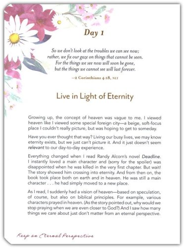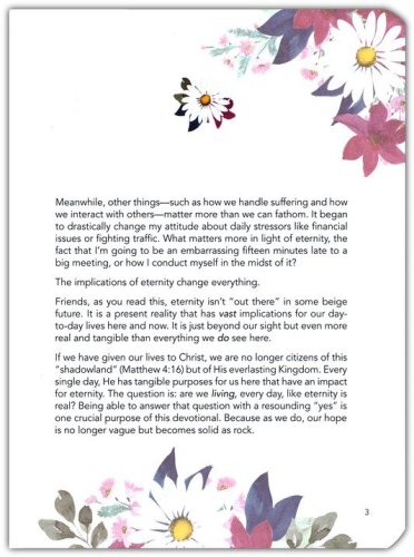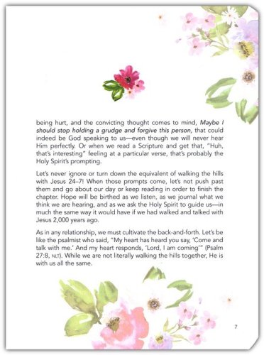 Gilt-edged pages complement the devotional's gold-foiled title. Each interior page is beautifully decorated with full-color floral illustrations, and a ribbon marker is included to keep these pages looking like new instead of dogeared and creased.