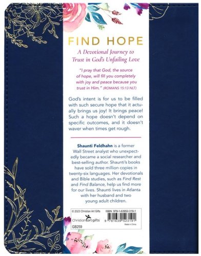 The Find Hope Devotional Navy Faux Leather Edition makes a heartfelt gift for a friend navigating through a particularly challenging period, such as illness or loss. It will also delight a mom or sister who cherishes spiritual growth when it is given as a birthday present.
