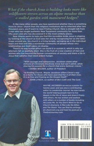 If, like many other people, you have questioned whether there is something more to Jesus' church than the religious institutions we've inherited after two thousand years, you'll want to read Finding Church. Here is straight talk from a man who has sought authentic New Testament community for more than fifty years and who has discovered it in the most unlikely places.