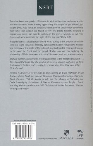 In this New Studies in Biblical Theology volume, Richard Belcher begins with a survey of the problem of wisdom literature in Old Testament theology. Subsequent chapters focus on the message and theology of the books of Proverbs, Job, and Ecclesiastes. These point forward to the need for Christ and the gospel. Belcher concludes by exploring the relationship of Christ to wisdom in terms of his person, work, and teaching ministry.