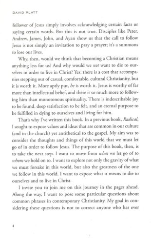 In this new book, David Platt, author of the New York Times bestselling book, Radical: Taking Back Your Faith from the American Dream, contends that multitudes of people around the world culturally think they are Christians yet biblically are not followers of Christ.