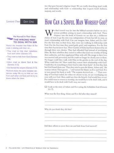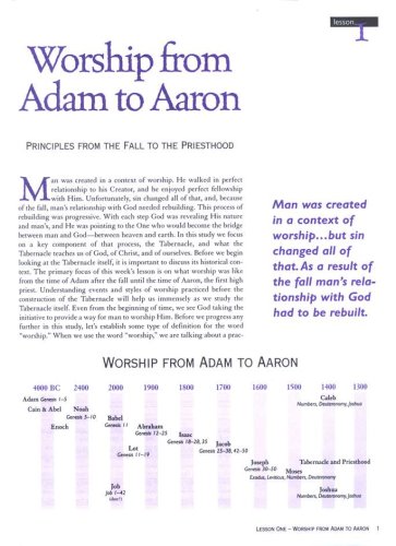 In the very first lesson of this book, you will observe that centuries before the Tabernacle was constructed, God taught His people about worship. You will discover that earthly Tabernacle and all its components hold a spiritual significance and was actually a model of the "true Tabernacle" in heaven, where Jesus Christ is eternally worshiped a King of kings and Lord of Lords.