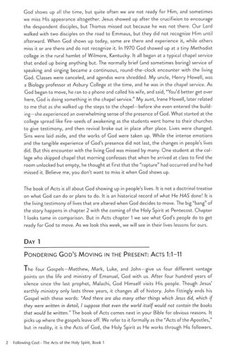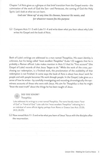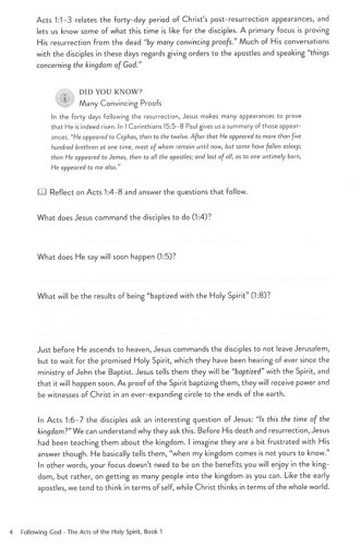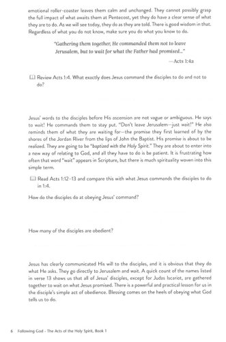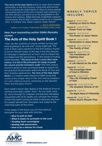 Part of the Following God Series, The Acts of the Holy Spirit, Book 1 is a 12-week study of life principles for today, to guide the church and the Christian's walk. It covers chapters 1 to 12 and centers around the Apostle Peter and the early church. Each of the 12 lessons consists of five daily readings. If being done in a small group setting, the readings and questions should be completed prior to the weekly meeting.