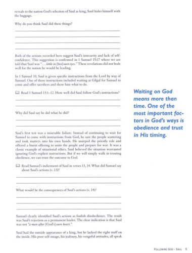 Both the good and the bad are examined in-depth to show insights in Following God's Life Principles from the Kings of the Old testament. As part of the following God's Character Studies", this workbook study contains twelve lessons on men whose lives God worked to shape and teach others in Israel, in Judah, and for future generations who read God's Word.