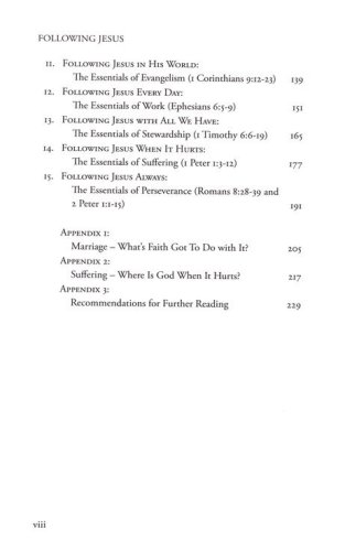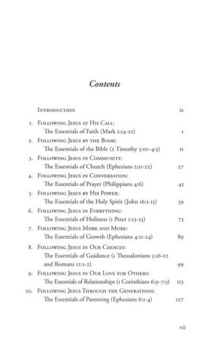 Following Jesus focuses attention on the basics of Christian discipleship, and covers the following vitally important themes: faith, the Bible, the church, prayer, the Holy Spirit, holiness, growth in grace, guidance, loving others, parenting children, evangelism, work, stewardship, suffering, and perseverance.