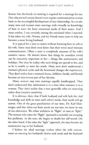 Using the latest research, stories from his own marriage, and case histories and biblical examples, Gary Smalley offers an insider's perspective into the world of men, including practical help and application so wives can deepen their relationships with their husbands and build a lasting marriage.