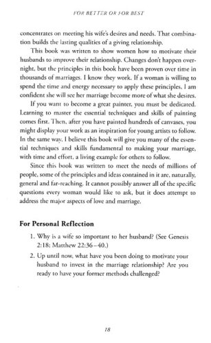 In this revised and updated edition of his classic bestseller, Gary Smalley explains how women can use their natural, God-given qualities to build a better marriage. He helps women understand not only the way men think, but also how to move a man's heart.