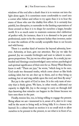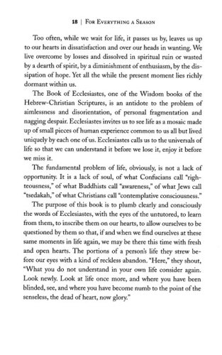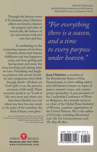 Through the famous verses of Ecclesiastes, Joan Chittister reflects on timeless themes: the purpose and value of human life, the balance of joy and sorrow, work and rest, love and loss. In meditating on the contrasting seasons of our lives, she shows how human fulfillment and true happiness come, not from getting and having more and more, but from knowing and valuing what we have. Friendship and laughter, patience and sorrow, humility and compassion, from birth through death all these are God's gifts to us, the precious moments of life itself.