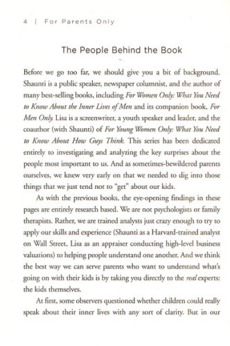 Shaunti Feldhahn and Lisa Rice take you inside the mind of teens and preteens through the same innovative approach that seized national attention in the best-selling books For Women Only, For Men Only, and For Young Women Only.
