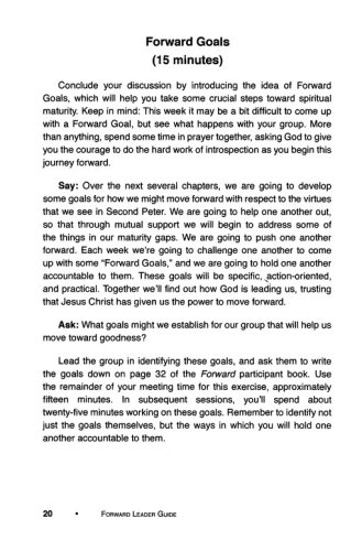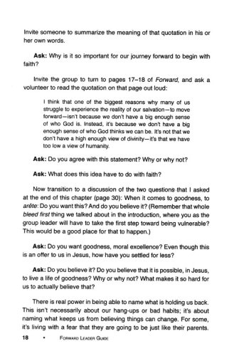 Designed for use with the Forward Participant Book and video, this leader guide helps leaders facilitate a small group using Forward curriculum. It contains instructions on how to use the interactive participant book and video in each session, as well as additional teaching content from the author.
