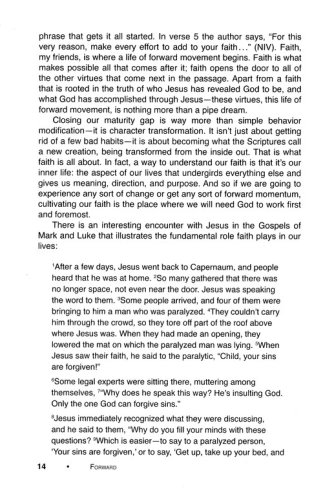 As a follow up to Cunningham's small group study called One, it follows One's format, including a participant book with teaching content and interactive elements; a leader guide; and video. However, small groups that have not previously used the One curriculum will enjoy Forward as a guide for developing Christian virtues with the support of and partnership of others in their small group.