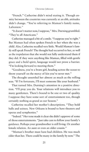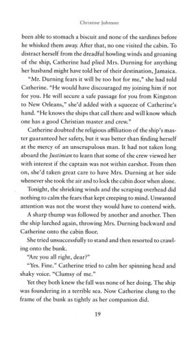 When Englishwoman Catherine Haynes loses both her parents and her home in 1856, she decides to cross the Atlantic to find her American mother's family in Louisiana. She enlists the help of Tom Worthington, a dashing Key West man who makes his living salvaging wrecked ships, but whose real goal in life is to bring to justice the man who stole his father's ship and caused his untimely death.