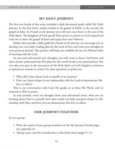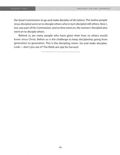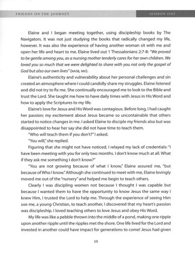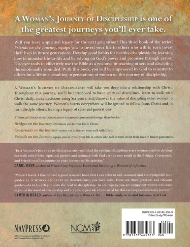 Woman's Journey of Discipleship series is written for women by women who know this journey firsthand. Friends on the Journey, the third book in the series, invites you to leave a spiritual legacy for the next generation. You'll learn how to minister life-to-life by relying on God's power and promises through prayer. It will equip you with the tools to effectively invest your life in others who will in turn invest their lives in future generations.