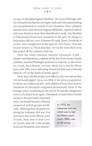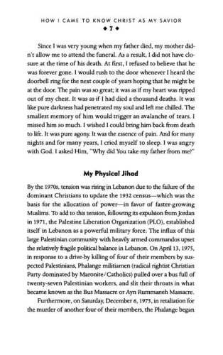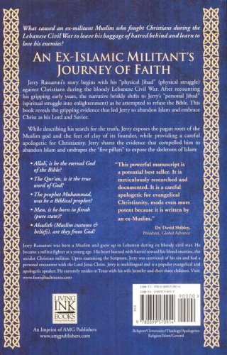 Jerry Rassamni's story begins with his "physical Jihad" (physical struggle) against Christians during the bloody Lebanese  Civil War. After recounting his gripping early years, the narrative briskly shifts to Jerry's "personal Jihad" (spiritual struggle into enlightenment) as he attempted to refute the Bible. This book reveals the gripping evidence that led Jerry to abandon Islam and embrace Christ at his Lord and Savior.