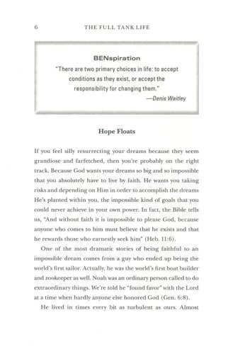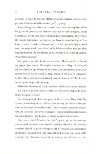 Modern-day Renaissance man and star of Bravo's Thicker Than Water Ben Tankard offers powerful motivation and practical tools to empower readers to find their destiny and create an action plan to unlock it. As a pastor, pilot, motivational speaker, bestselling Gospel/Jazz musician, and reality TV star, Tankard has a lot of experience with both success and failure. He has learned that our greatest opportunities often come from our greatest disappointments. Today, he is doing what he was born to do, and he knows it didn't happen by accident. Tankard encourages readers to examine seven key elements-Dreams, Environment, Subconscious, Time, Inspiration, Network, and You, sharing his life-tested secrets to help readers find their own way. Including fresh insights on familiar Bible passages, wisdom from Tankard's own setbacks, and laugh-out-loud stories, Tankard shows readers that they too can have a "full tank" life.