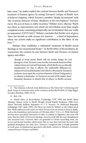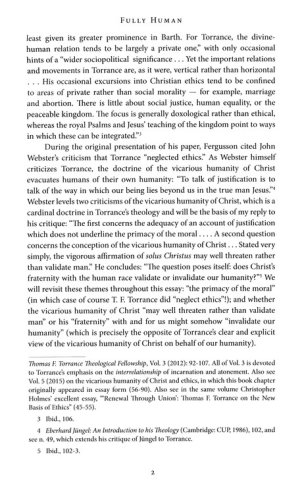 Todd Speidell's Fully Human in Christ builds upon Torrance's vision of a Christian ethic radically rooted in God's grace, which encompasses, sustains, and transforms the entire human and created order. A trinitarian-incarnational social ethic does not begin with our human causes, projects, and agendas, however noble they might be, but with witness to the reconciling person and work of Jesus Christ for us.