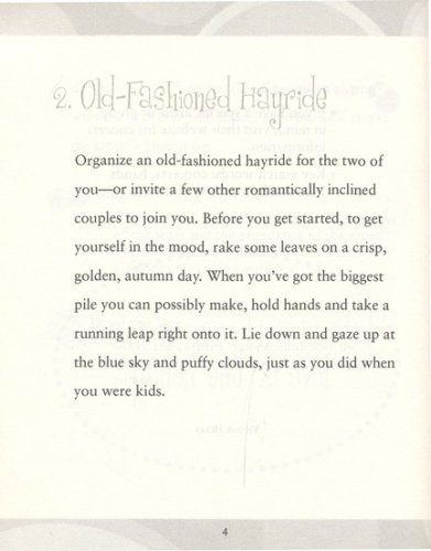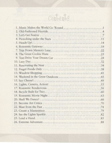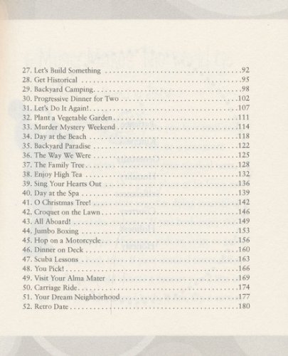 Inside you will find ideas for dates that will add a little fun and romance to your marriage. From bungee jumping or taking a romantic carriage ride to backyard camping or volunteering for a worthy cause, you'll find dates for all occasions and all budgets. Who says dates have to be boring? Add some spice to them with these fun and creative dates…just for you!