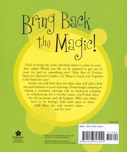 Tired of doing the same old thing when it comes to your date night? Would you like to be inspired to get out of your rut and try something new? Then Fun & Creative Dates for Married Couples — 52 Ways to Enjoy Life Together is the book for you!