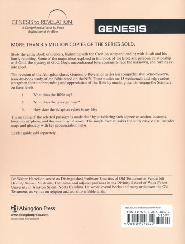 What does the Bible say? What does it mean? How does it relate to my life? Genesis to Revelation, a comprehensive, verse-by-verse, book-by-book study of the Bible, will strengthen your understanding and appreciation of the Scripture by helping you engage on these three levels. Newly revised, these Abingdon Press classics are based on the NIV translation and are presented in an easy-to-read format. Each of the volumes includes thirteen sessions and a separate Leader Guide. This study of the entire Book of Genesis begins with the creation story and ends with Jacob and his family reuniting. Some of the major ideas explored in this Book of the Bible are: personal relationship with God, the mystery of God, God's unconditional love, courage to face the unknown, and turning evil into good. The meaning of the selected passages is made clear by considering such aspects as ancient customs, locations of places, and the meanings of words. The simple format makes the study easy to use. Includes maps and glossary with key pronunciation helps.