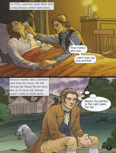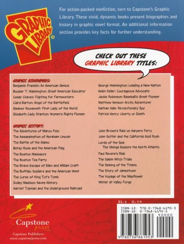 Action-packed non-fiction, the graphic library series present the stories of history in high-interest, graphic novel format. The story of George Washington's life follows him from his early work surveying, to the battles he fought during his early days in the military, to his work with the newly-formed American army, to his time as president. Index, glossary, and "more information" fact page are included. 32 pages, softcover. 4th Grade reading level.