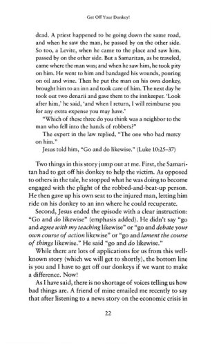 Jesus had little patience with institutional religion that cared for its own needs while neglecting the plight of ordinary people. In one of his most famous parables, he sets up as a model of Christian behavior a man who, unlike some religious folks, actually gets down off his donkey and helps a person in dire need.