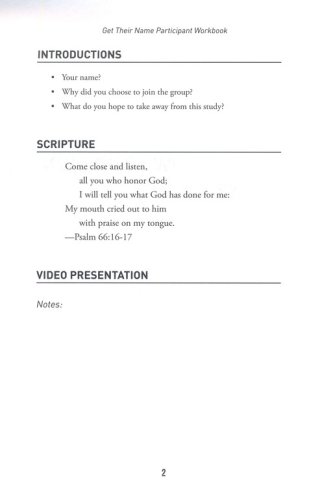 The Participant Guide is a workbook to facilitate the layperson’s experience as the church studies Get Their Name. It includes group and individual activities, and personal devotional material.