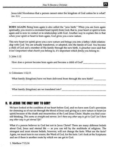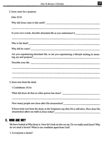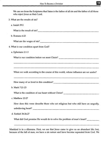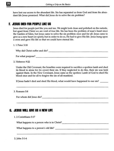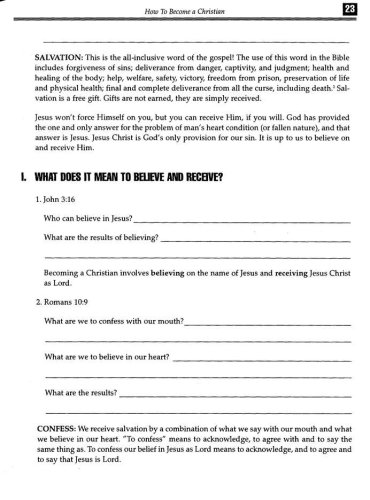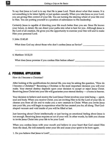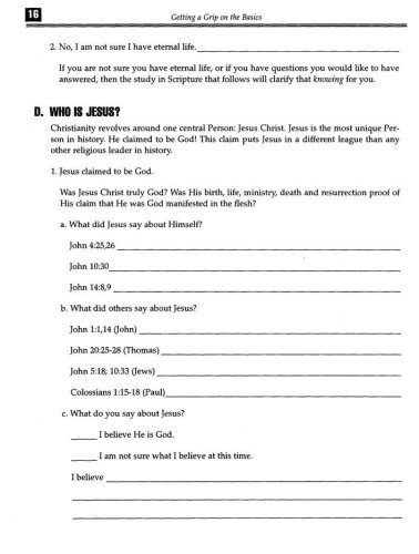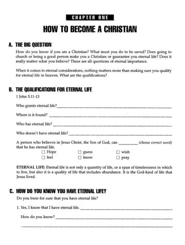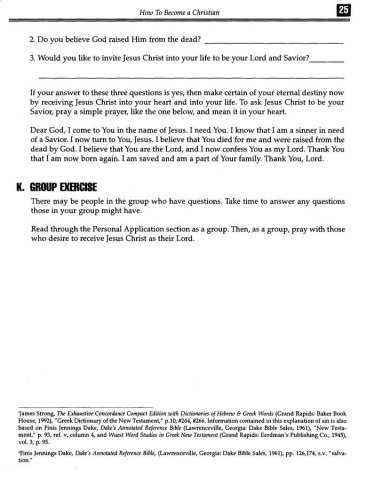When a child is born doctors and family encourage the new parents to provide three elements essential to the survival of the newborn: love, nourishment, and protection. These same elements are vita for every newborn Christian as well. This workbook will help those new to the Christian faith, and those needing a refresher course, find these basics for survival.