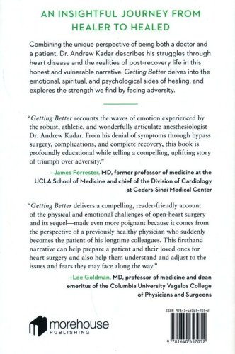 Inspired by the harrowing experience of being a seasoned doctor who unexpectedly becomes a patient, Dr Andrew G. Kadar reimagines the conventional medical narrative by inviting readers into an enlightening journey of healing. More than a simple story of physical recovery, however, this trailblazing guide delves into the emotional, spiritual, and psychological facets of getting better, ultimately helping readers through initial challenges, gradual return to normalcy, and introspective reflections during convalescence. From the confines of a medical facility to the reality of everyday life, Kadar shows what to expect when transitioning from the patient experience to sobering post-recovery reality. Enriching each chapter is a unique fusion of professional medical insights and personal experience. This dual viewpoint gives an invaluable glimpse into the healthcare system, providing rich insights into everything from patient care, to staying in a positive mindset regardless of diagnosis, to the personal impact of long-term health challenges. What results is a testament to human resilience, one that underscores the transformative power of adversity and the importance of self-care. Whether you're a medical professional, a patient, or navigating a loved one's health challenges, this book delivers a uniquely enlightening and empowering perspective on the complexities of healing and the innate strength within us all.