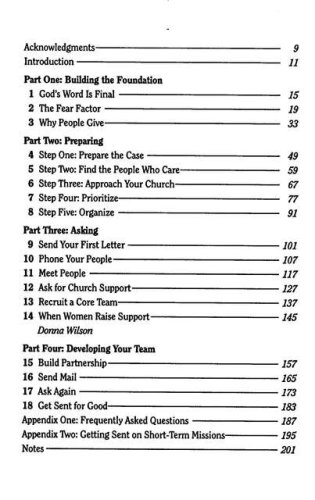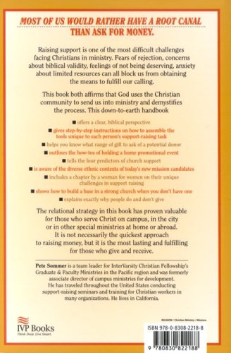 Most of us would rather have a root canal than ask for money. Raising support is one of the most difficult challenges facing Christians in ministry. Fears of rejection, concerns about biblical validity, feelings of not being deserving, anxiety about limited resources can all block us from obtaining the means to fulfill our calling. This book both affirms that God uses the Christian community to send us into ministry and demystifies the process. This down-to-earth handbook offers a clear, biblical perspective gives step-by-step instructions on how to assemble the tools unique to each person's support-raising task helps you know what range of gift to ask of a potential donor outlines the how-tos of holding a home promotional event tells the four predictors of church support is aware of the diverse ethnic contexts of today's new mission candidates includes a chapter by a woman for women on their unique challenges in support raising shows how to build a base in a strong church when you don't have one explains exactly why people do and don't give The relational strategy in this book has proven valuable for those who serve Christ on campus, in the city or in other special ministries at home or abroad. It is not necessarily the quickest approach to raising money, but it is the most lasting and fulfilling for those who give and receive.