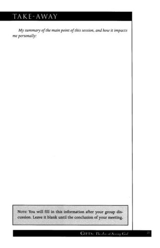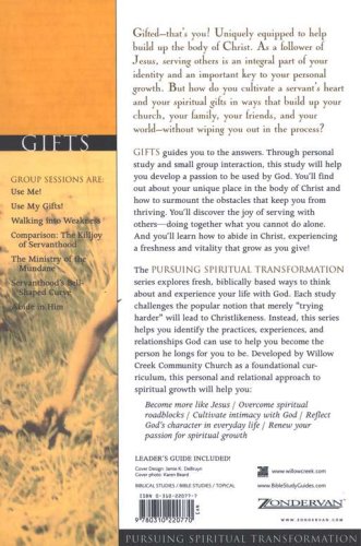 Gifted–that’s you! Uniquely equipped to help build up the body of Christ. As a follower of Jesus, serving others is an integral part of your identity and an important key to your personal growth. But how do you cultivate a servant’s heart and your spiritual gifts in ways that build up your church, your family, your friends, and your world–without wiping you out in the process? Gifts guides you to the answers. Through personal study and small group interaction, this study will help you develop a passion to be used by God. You’ll find out about your unique place in the body of Christ and how to surmount the obstacles that keep you from thriving. You’ll discover the joy of serving with others–doing together what you cannot do alone. And you’ll learn how to abide in Christ, experiencing a freshness and vitality that grow as you give!Leader’s guide included!Gifts group sessions are:Use Me!Use My Gifts!Walking into WeaknessComparison: The Killjoy of ServanthoodThe Ministry of the MundaneServanthood’s Bell-Shaped CurveAbide in Him