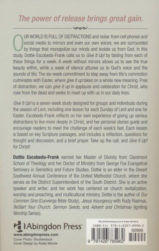 This Lenten study reflects on all the things that hold our attention, occupy our minds and monopolize our time, yet still isolate us from God and the world around us. Things like social media, phones, the noise of life, and focus on the external. Imagine taking on the challenge of giving up each of these for a week. During this seven-week study, Dottie Escobedo Frank takes the reader on a journey of self discovery, where he or she learns that the power of release brings great gain. The biggest gain is a stronger relationship with Christ. In the release, each person is freed to "give it up" in applause and praise for a life deeply lived in Christ.