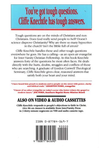 Tough questions are on the minds of Christians and non-Christians. Does God really send people to hell? Doesn't science disprove Christianity? Why are there so many hypocrites in the church? Isn't the Bible full of errors? Cliffe Knechtle handles these and other tough questions everywhere he goes. He has a calling — as an open-air evangelist for InterVarsity Christian Fellowship. In this book Knechtle answers forty of the questions he most often faces. He deals directly with the hurts, doubts, struggles and conflicts of those who are searching. A graduate of Gordon-Conwell Theological Seminary, Cliffe Knechtle gives clear, reasoned answers that satisfy both your heart and your mind.