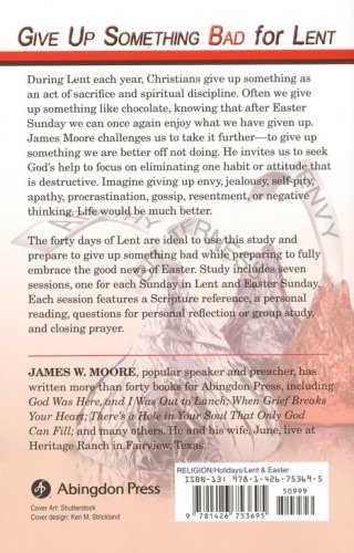 During Lent each year, Christians give up something as an act of sacrifice and spiritual discipline. Often it is something like chocolate, knowing that after Easter Sunday they can once again enjoy what they have given up. James Moore challenges readers to take it further—to give up something spiritually that they would be better off not doing. He invites all to seek God's help to focus on eliminating one habit or attitude that is destructive. Imagine giving up envy, jealousy, self-pity, apathy, procrastination, gossip, resentment, or negative thinking, how much better life would be. The forty days of Lent are ideal to use this study and prepare to give up something bad while preparing to fully embrace the "Good News" of Easter. Study includes seven sessions, one for each Sunday in Lent and Easter Sunday. Each session features a Scripture reference, a personal reading, questions for personal reflection or group study, and closing prayer.