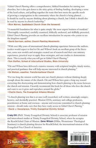 With nearly fifty years combined global church-planting experience, Craig Ott and Gene Wilson are well qualified to write a comprehensive, up-to-date guide for cross-cultural church planting. Combining substantive biblical principles and missiological understanding with practical insights, this book walks readers through the various models and development phases of church planting. Advocating methods that lead to church multiplication, the authors emphasize the role of the missionary church planter. They offer helpful reflection on current trends and provide best practices gathered from research and empirical findings around the globe. The book takes up a number of special issues not addressed in most church planting books, such as use of short-term teams, partnerships, and wise use of resources. Full of case studies and real examples from around the world, this practical text will benefit students, church planters, missionaries, and missional church readers.
