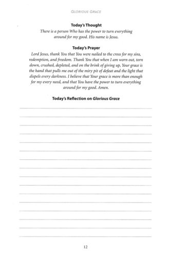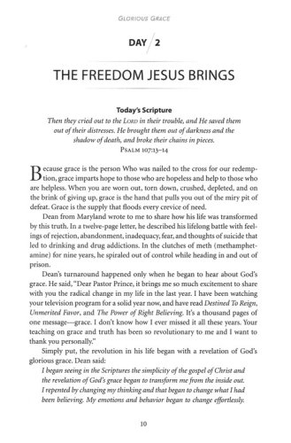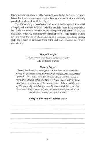 With Joseph Prince as a guide, the faithful can delve even further into the radical, inside-out transformation that comes from a personal acceptance of grace. This devotional will revolutionize how the reader sees God, leading him or her to a victorious life with lasting breakthroughs. Each daily experience includes Today's Scripture: A Scripture to meditate on to recalibrate the mind and receive the fullness of God's grace; Today's Excerpt: A key truth about grace that ministers and delivers God's liberating love; Today's Thought: An uplifting, liberating, and powerful thought for the day; Today's Reflection: A place to journal; Today's Prayer: A simple but powerful prayer to help anyone express his or her heart to the heavenly Father.