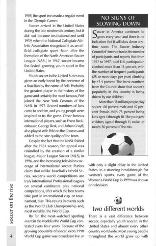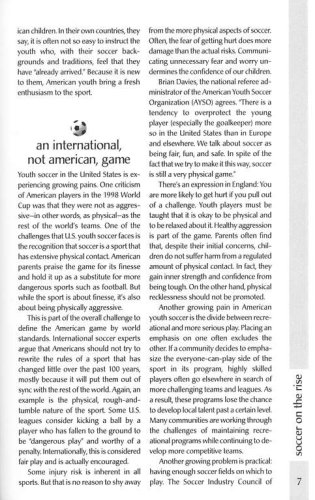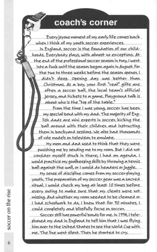 Read this information-packed book and you'll excel as a soccer parent! You'll learn the basics of the sport, including skills from beginner to expert. "Mom's View" and "Coach's Corner" sections offer tips aplenty in encouraging your child's passion for soccer and making it an enjoyable, healthy, and injury-free experience. Features rules, glossary, resource lists, and index. 224 pages, softcover from Rodale.