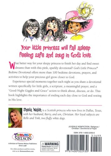 Tuck your little girl into God's love with this bestselling bedtime devotional from Sheila Walsh, author of the popular series Gigi, God's Little Princess and cohost of LIFE Today. Bedtime means special moments to share between a parent and daughter, and God's Little Princess Bedtime Devotional will help settle her heart and mind as she heads to bed.