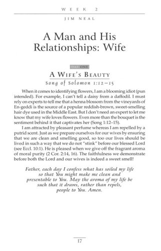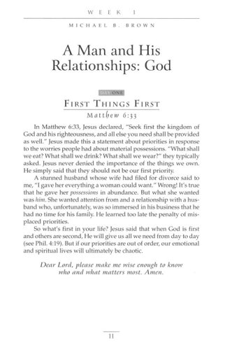 Contributors discuss a Scripture for each day of the year and how that passage addresses common concerns for Christian men–concerns such as relationships, finances, temptations, time, community, emotions, and spiritual growth. Whether married or single, employwed or unemployed, a leader in the church or a new believer, readers will be blessed by the daily challenges and prayers.
