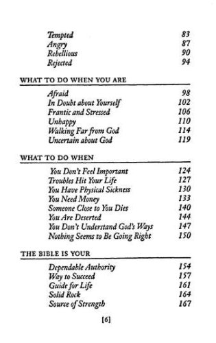 A collection of hundreds of versesShort readings and prayers which make it a perfect companion for time alone with GodVerses to address every season of life and answer readers' most pressing questionsScriptures to comfort in times of worry, offer direction in times of crisis, and reassure you of God's love in times of discouragement
