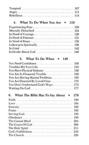 Short readings and prayers, making it a perfect companion for time alone with God or as a giftable keepsakeA collection of hundreds of verses from the Bible arranged topically to address every season of life and answer your most pressing questionsScriptures to comfort in times of worry, offer direction in times of crisis, and reassure you of God's love in times of discouragement