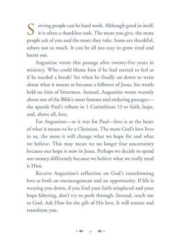 90 devotions to learn the life-altering love of GodHow to change your heart and desire God above allAncient writings made accessible and applicable for modern readersShort excerpts from St. Augustine’s works, such as Confessions and The City of GodPractical prompts to apply Augustine’s insights