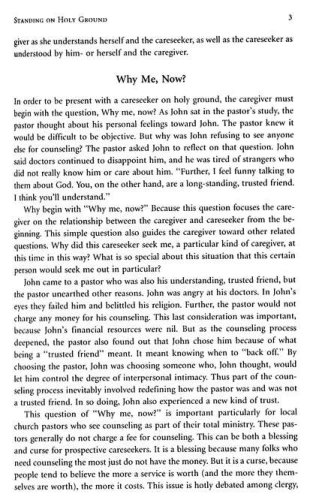 What does it mean in a pastoral relationship when a careseeker evokes specific images of God or begins to speak of angels, demons, or near-death experiences? How is a caregiver to understand the faith of one who seeks help? How and to what degree is a caregiver to empathize with and interpret the careseeker's religious language?M. Kathryn Armistead offers practical psychological and theological guidance for counselors on these questions. She refers to the counseling situation as one that involves "standing on holy ground." Using case studies, she shows how to discover and discern the unconscious weavings of images, feelings, and ideation that combine to produce God-language and images of God, that is, "what is most holy to the self."