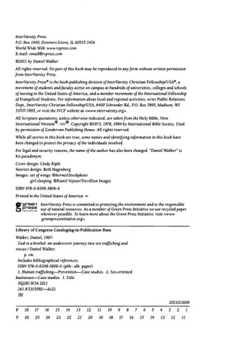This is the true story of an undercover investigator's experiences infiltrating the multi-billion-dollar global sex industry. It is a story of triumph for the children and young teens released from a life of slavery and the rescuer who freed many hundreds of victims leading to the prosecution of dozens of perpetrators. And it is a story of haunting despair for those left behind in corrupt systems of law enforcement. It is the personal story of Daniel Walker, one man who followed a path of costly discipleship, agonizing failure and unlikely redemption. And it is a challenge to God's people to join in the battle that all might be freed. The Anti-Trafficking Tour featuring Daniel Walker is coming to a city near you in October 2011! Visit www.ivpress.com/antitraffickingtour for tour schedule and more information.