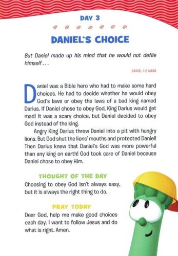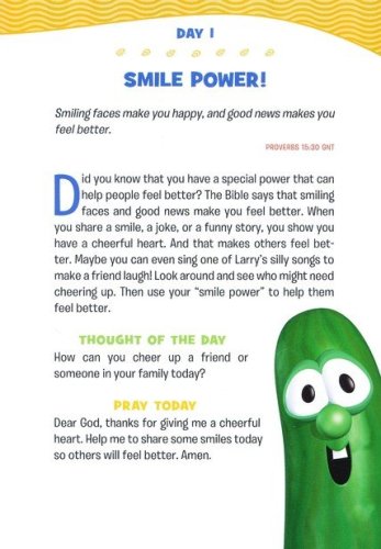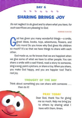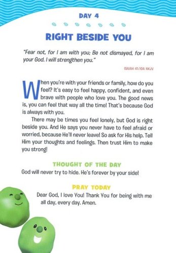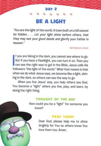 Dive into God's word with the Veggies! This 365-day devotional is perfect for young boys who want to grow in their faith and learn more about God. Filled with familiar characters and encouraging Bible messages, this annual devotional offers boys and their loved ones the opportunity to share time together each day. Each daily entry includes a Bible verse, short devotion, Thought of the Day, and prayer. These devotions break down big concepts–such as God's love, dealing with emotions, or forgiving others–into bite-sized pieces children can understand. Rich biblical content will help boys learn more about God as they develop the habit of spending time with God each day. Great for bedtime reading, family devotion time, or as a fresh way to start each day, these devotions will remind growing boys that God loves them and cares for them–no matter what.