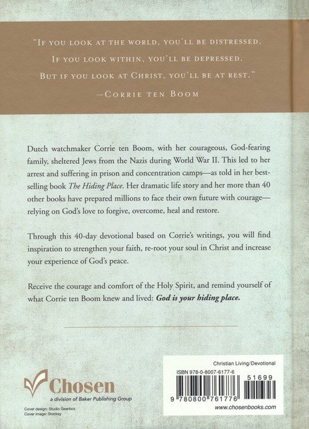 Now, for admirers of Corrie ten Boom as well as a new generation of readers, this 40-day devotional based on Corrie’s writings will strengthen your faith, re-root your soul in Christ, and increase your experience of God’s peace. Receive the courage and comfort of the Holy Spirit, and remind yourself of what Corrie ten Boom knew and lived: God is your hiding place.