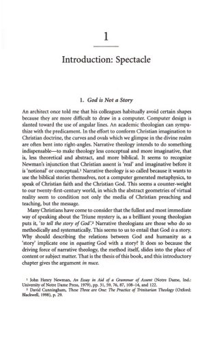 of the theologian is to 'tell God's story' has not helped theology to advance the reality of its doctrines. Murphy contends that the scriptural revelation on which Christian theology depends is not a story or a plot but a dramatic encounter between mysterious, free, and unpredictable persons. She