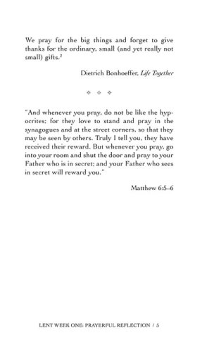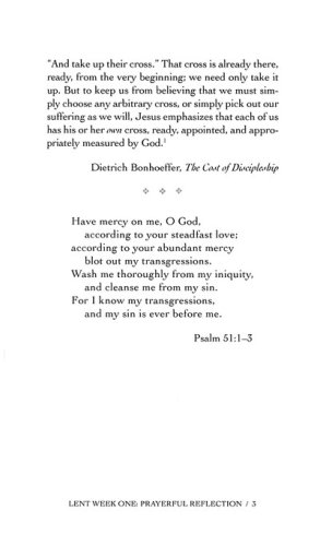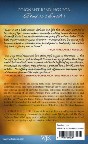 These forty-seven stirring devotions will guide and inspire readers as they move thematically through the weeks of Lent and Easter, encountering themes of prayerful reflection, self-denial, temptation, suffering, and the meaning of the cross. Passages from Dietrich Bonhoeffer's letters and sermons provide special encouragement as readers prepare themselves spiritually for Holy Week and Easter Sunday. Supplemented by an informative introduction to Bonhoeffer's life and a Scripture passage for each day of the season, these daily devotions are moving reminders of the true gift of Christ on the cross.