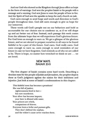 God Is With Us, originally published in 2016, invites you to explore your longing for God's presence through a study of the lectionary Bible readings for Advent and Christmas. The hope of Advent is the fulfillment of that longing; we await the coming of Jesus as Immanuel, God With Us. Each week's Scriptures call us to praise God as we actively await the coming of Christ and prepare our hearts and lives for his arrival. Through the readings, we hear the invitation to claim and celebrate the new hope we have in Jesus Christ. The season of Advent offers opportunities to prepare for God’s coming in human form in the infant Jesus and for the fulfillment of God’s kingdom with the second coming of Christ. Hope is the focus of Advent worship, study, and prayer. We will discover the light that began in the manger, which continues as we look forward with hope to Christ's return. God Is With Us is based on the Revised Common Lectionary Scriptures for church year A, the first of a three-year cycle of Bible readings. The study includes commentary and reflection on readings from the Old Testament, the Gospels, and the Epistles. It offers the opportunity to explore these Bible readings in a five-session study. It will help participants understand, appreciate, and engage in meaningful and joyous celebrations of Advent and Christmas and to live each day in God's hope through Jesus Christ.