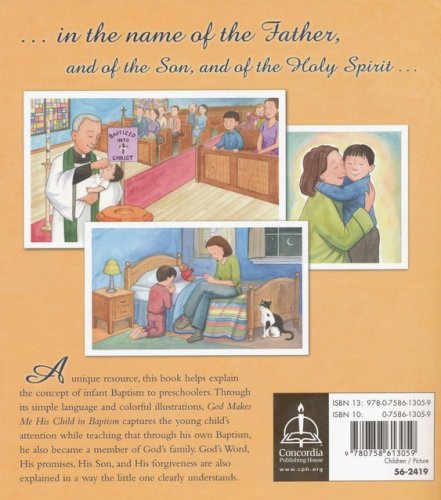 This book will help explain the concept of infant baptism to preschoolers. Through its simple language and coloring book format, this useful volume captures childrens attention while teaching them that through their own baptism they became a part of Gods family.